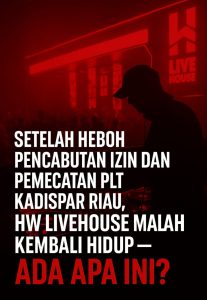 PEKANBARU – Tempat hiburan malam HW Livehouse yang diprotes warga dan dicabut izin operasionalnya kini kembali beroperasi di tengah pencopotan Pelaksana tugas (Plt) Kepala Dinas Pariwisata Riau, Ade Yudhistira yang baru menjabat dua pekan.