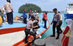 Polisi Baik Polsek Kepulauan Seribu Utara Bantu Penumpang Turun dari Kapal di Dermaga